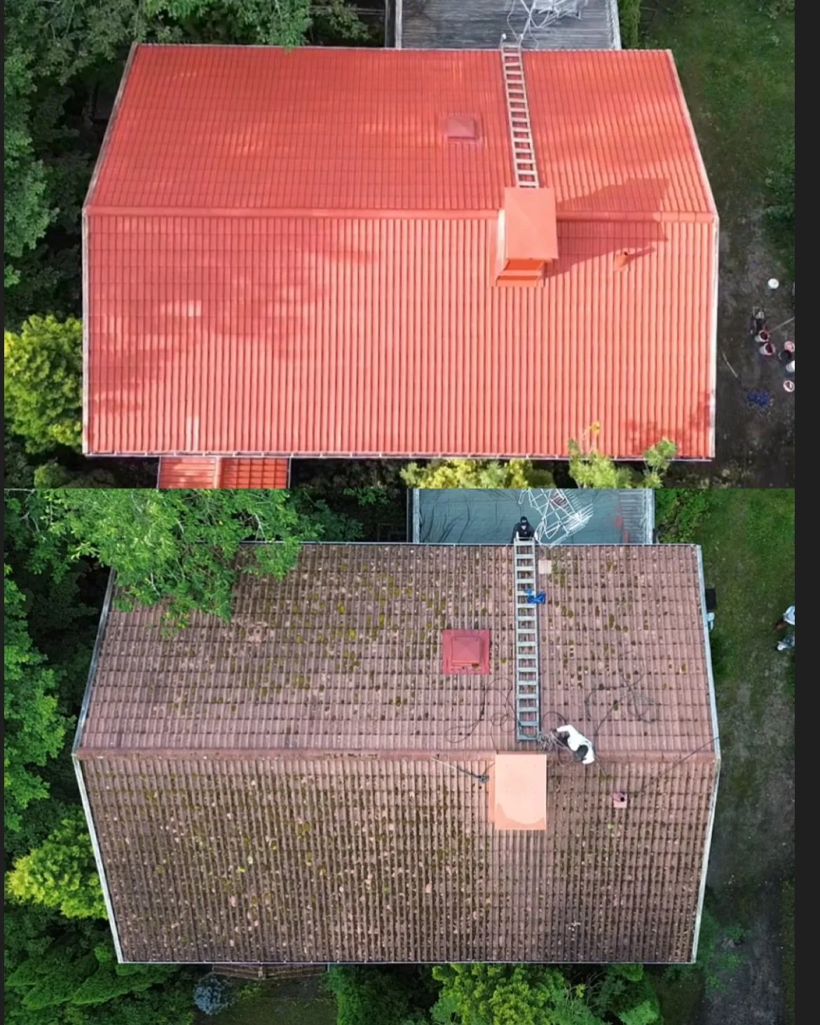 Kohde oli 1980-luvun omakotitalo, jonka tiilikatto oli sammaloitunut ja menettänyt väriään. Pinnoituksen jälkeen katto näytti kuin uudelta.